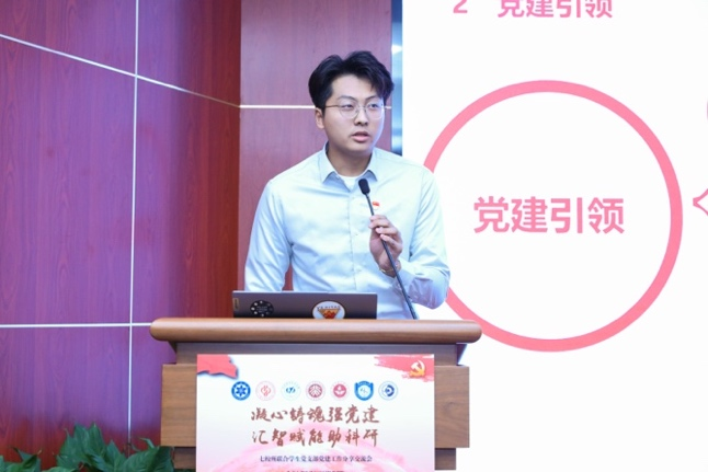 中国矿业大学(北京)地球科学与测绘工程学院博24-1党支部张琦以《党建引擎驱动地学创新:在能源与生态的前沿书写中国方案》为题,分享了支部成员用地质智慧守护绿水青山的青年答卷。中国石油大学(北京)地球物理学院勘探尖兵党支部苟祖康以《顶天立地,格物致知:书写一融双高地物新篇章》为题讲述了党支部联合云南省楚雄彝族自治州河硐村开展产学研转化的实践案例。中国科学院大学地球与行星科学学院建筑中心党支部杜晓晗以《党建领航科研路,共筑人居新景图》为题介绍了党支部服务中共第一个农村支部河北省衡水市安平县台城村特别支部乡村规划与设计提升的示范工作。