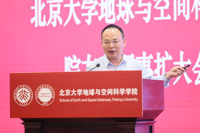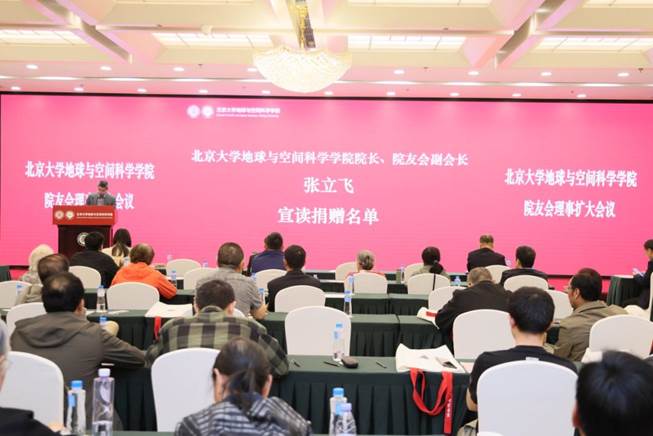 5月10日上午,北京大学地球与空间科学学院(简称“地空学院”)院友会2025年理事扩大会议在中关新园群英厅举行。北京大学校友会副秘书长、校友工作办公室副主任李存峰,地空学院院友会会长修济刚,地空学院院长张立飞,院党委书记李培军,院友会副会长宋振清、夏曙东、崔玉龙、傅绥燕,地空学院副院长宁杰远、刘瑜、何建森、沈冰,院党委副书记江大勇、陈云超,院友会常务理事、理事、秘书处人员,学院在职教师代表等线下出席会议,120余名院友会常务理事、理事、院友、在职教师通过线上方式参会。会议由宋振清主持。