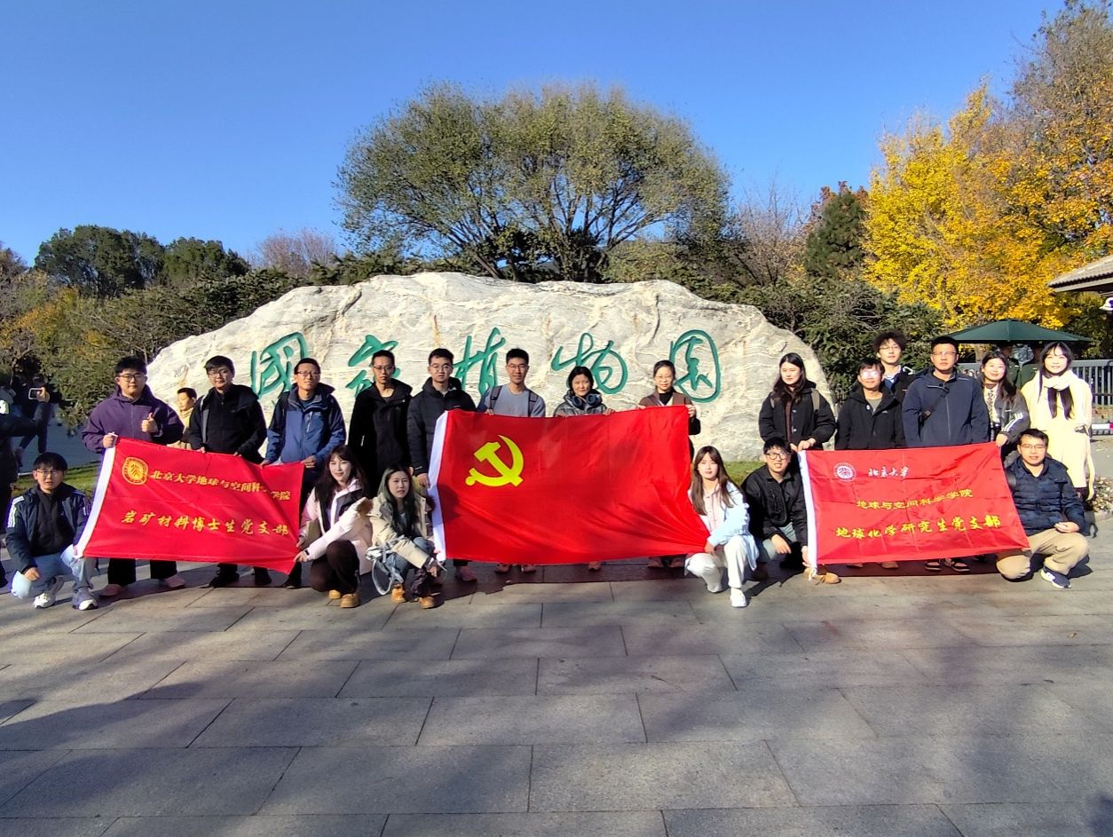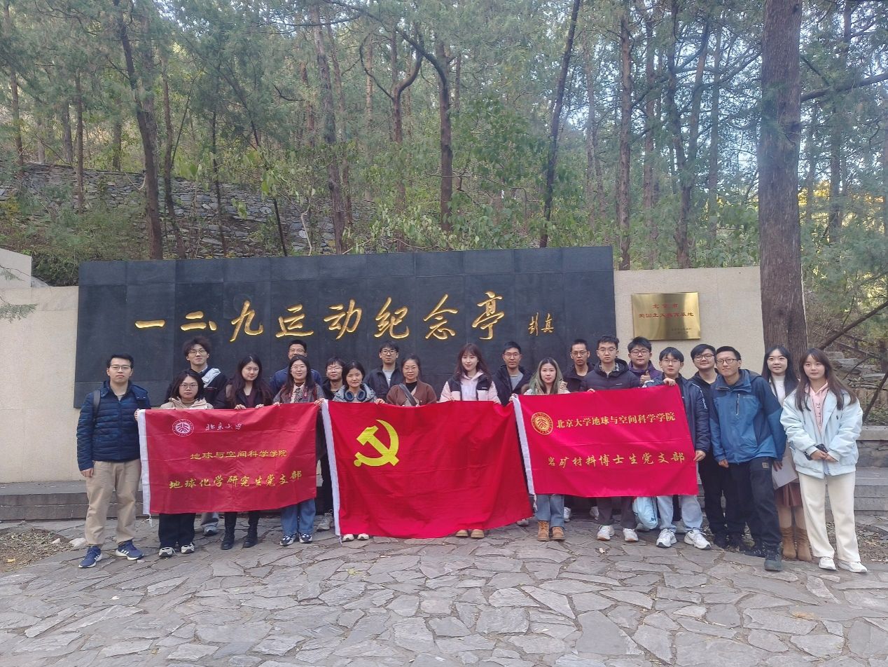 为深入学习宣传贯彻党的二十大精神,巩固拓展主题教育成果,引导青年党员深刻理解以爱国主义为核心的伟大民族精神,11月9日下午,北京大学地球与空间科学学院岩矿、材料博士生党支部联合地球化学研究生党支部,赴国家植物园(北园)“一二·九”运动纪念地开展“传承抗战精神,勇担复兴使命”主题党建活动。