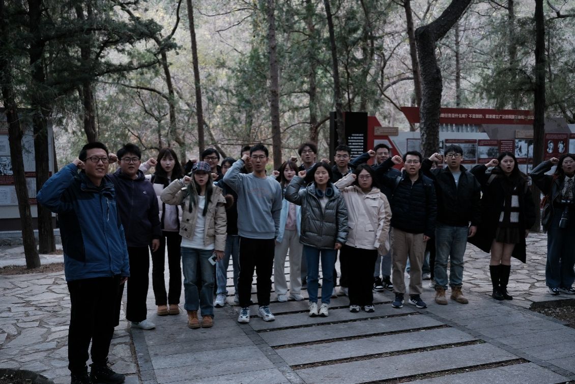 步履坚定,感悟精神传承。国家植物园(北园)所在的樱桃沟,曾是“一二·九”运动时期北平学联举办军事夏令营、秘密培训爱国青年的重要地点。同学们沿着苍松翠柏掩映下的沟谷步道前行,脚下是当年进步青年走过的“觉醒之路”。这条从“一二·九”运动纪念亭延伸出的路径,不仅是一次地理空间的行走,更是一次穿越时空的精神对话,让全体党员在步履之间感悟到革命前辈在国家危难之际所展现的觉醒意识与历史担当。