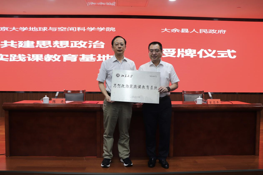 北京大学地球与空间科学学院与大余县人民政府共建“北京大学思想政治实践课教育基地”签约暨授牌仪式在该馆内举行。北大地空学院党委书记李培军代表北大地空学院与大余县人民政府签约,协议共建“思想政治实践课教育基地”,并为基地授牌。