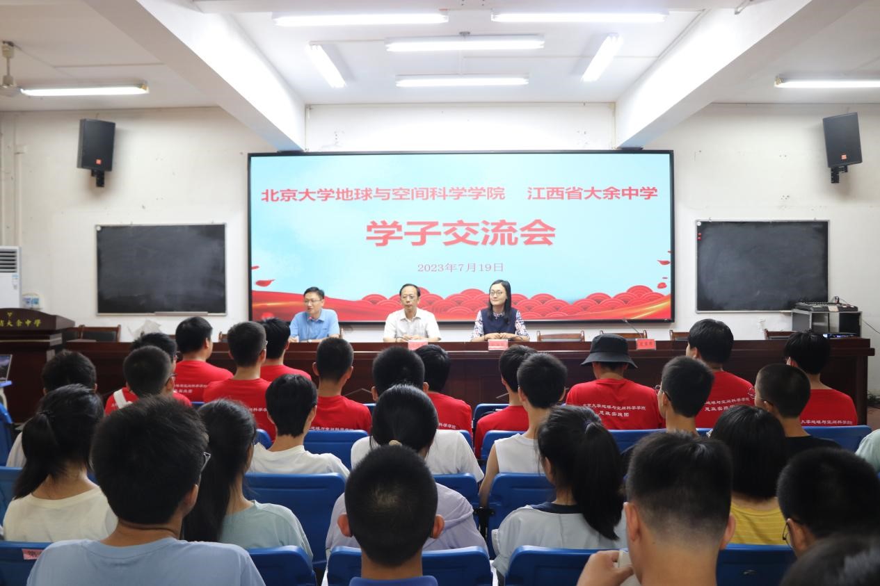参观完钨产业技术研究院,实践团前往大余中学,与当地高中生们开展交流学习座谈会。大家一同观看北京大学和地球与空间科学学院的宣传片,初步了解学院的基本概况、专业方向、课程设置、毕业前景等。之后2022级3名本科生刘亦飞、胡嘉伟、何可人依次上台,向大余中学的学生们讲解自己高中时期的学习经验和技巧,分享调节学习压力的方式方法。徐逸恒、高钰萍、秦昊、马千一4名同学作为四个阶段的学生代表,结合自己在学习、生活、社会实践等多方面的亲身经历,介绍丰富多彩的大学体验,分享成长的收获和感悟。