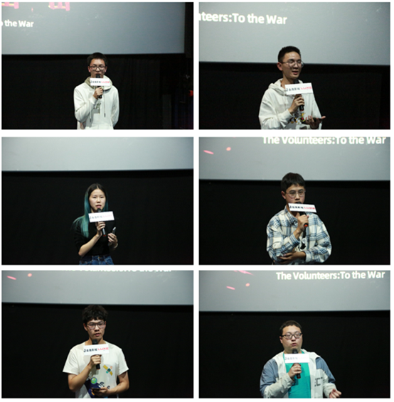 观影结束以后,大家在影院内就地开展了学习感想交流环节,讲述参与此次活动的感悟、学到的历史。各个支部的成员踊跃发言,与大家交流心得体会。汤宜之就抗美援朝的英雄历史分享道:“在军事装备的巨大悬殊下,我们的革命先辈们凭借精神、智慧和勇气打赢了美国人,实在令我敬佩。”姬钰着重分享了自己的现实感受:“忆往昔、看今朝、望未来,我们在红旗下学习成长,在新时代中奋斗钻研,在民族复兴的伟业中添砖加瓦。”姚泽贤分享道:“军事博物馆的参观令我对我国现今军事实力有了充分的了解,他们捍卫着祖国的和平,捍卫着中国人民对世界和平的期盼。”陆昊一从多个角度描述了今天的学习感悟:“制度上,我国军事制度改革正在进行。思想上,我们的理论建设取得了丰硕成果。精神上,我们遥遥领先。”李嘉桐就历史与现实的对比分享道:“这部电影中有句台词完美地概括了抗美援朝战争的意义:‘只有打赢这场战争,中国人民才有生存的可能。’我认为这是每一位生在和平年代的青年应当铭记的,我们现在的生活来之不易。”马右任结合战场背后的温情分享了自己的感悟:“在艰苦而宏大的战争外有很多细节可以体现我们党和军队的人道主义关怀和国际主义精神。在军事博物馆中的抗美援朝摄影展里也有许多照片展示了朝鲜人民和我们志愿军战士友好互动的场景。这是共产主义精神和国际主义精神的体现。”